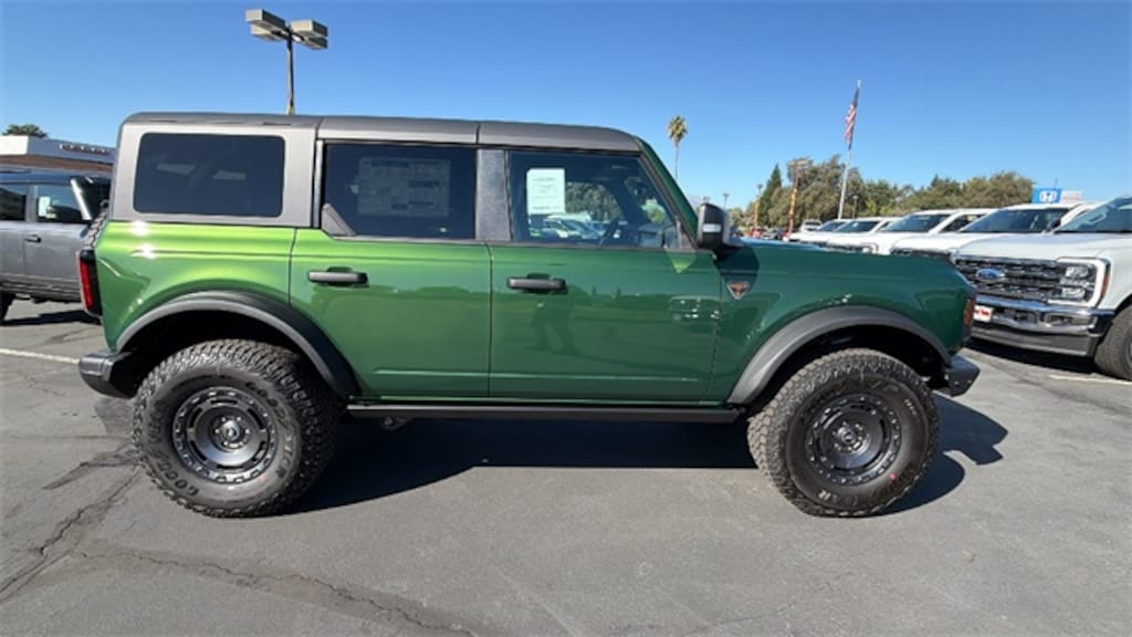 Vehicle is equipped with Sasquatch Package (High Clearance Fender Flares, High Clearance Suspension, Position-Sensitive Bilstein Shock Absorbers, and Wheels: 17" Carbonized Gray Painted Aluminum), 4-Wheel Disc Brakes, 7 Speakers, ABS brakes, Air Conditioning, Alloy wheels, AM/FM radio: SiriusXM with 360L, AM/FM Stereo, Auto High-beam Headlights, Auto-dimming Rear-View mirror, Brake assist, Carbonized Gray Molded-In-Color Hard Top, Compass, Delay-off headlights, Driver door bin, Driver vanity mirror, Dual front impact airbags, Dual front side impact airbags, Electronic Stability Control, Emergency communication system: 911 Assist, Exterior Parking Camera Rear, Ford Performance Heavy-Duty Modular Front Bumper, Front & Rear Floor Liners w/o Carpet Floor Mats, Front anti-roll bar, Front Bucket Seats, Front Center Armrest, Front fog lights, Front reading lights, Front wheel independent suspension, Fully automatic headlights, Hard Top Sound Deadening Headliner, Heated door mirrors, Heated front seats, Heated steering wheel, Illuminated entry, Integrated roll-over protection, Leather Shift Knob, Low tire pressure warning, Marine Grade Vinyl Heated Bucket Seats, Occupant sensing airbag, Outside temperature display, Overhead airbag, Overhead console, Panic alarm, Passenger door bin, Passenger vanity mirror, Power door mirrors, Power steering, Power windows, Radio data system, Rear-Window Defroster & Washer, Remote keyless entry, Security system, SiriusXM w/360L, Speed control, Split folding rear seat, Steering wheel mounted audio controls, SYNC 4, Tachometer, Telescoping steering wheel, Tilt steering wheel, Traction control, Trip computer, Variably intermittent wipers, Voltmeter, and Wheels: 17" Carbonized Gray-Painted Aluminum. Price includes: $2000 - Retail Bonus Cash. Exp. 01/05/2026