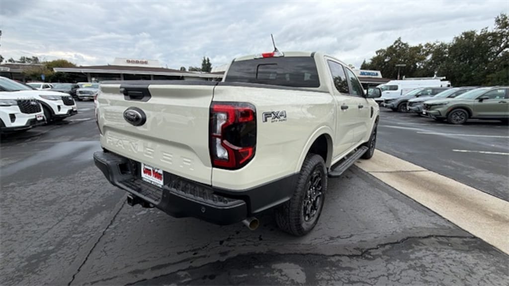 Vehicle is equipped with Advanced Towing Package (Pro Trailer Backup Assist and Trailer Brake Controller), Black Appearance Package (Black Center Bar & Surround Grille, Black Rear Bumper, Body-Color Painted Front Fascia, Front & Rear Black Ford Ovals, Painted Body-Color Wheel Lip Molding, Unique Carpet Mats, and Wheels: 18" Black Painted), Equipment Group 300A Standard, FX4 Off-Road Package (FX4 Off-Road Box Decal, FX4 Selectable Drive Modes, Off-Road Screen in Center Stack, Off-Road Tuned Shocks, and Trail Control), Sport Appearance Package (Gray Painted Center Bar & Grille Surround, Gray Painted Front Fascia & Rear Bumper, and Sport Box Decal), Trailer Tow Package (Class IV Trailer Hitch Receiver), 4WD, 4-Wheel Disc Brakes, 6 Speakers, ABS brakes, Air Conditioning, Alloy wheels, AM/FM radio: SiriusXM, AM/FM Stereo, Auto High-beam Headlights, Auto-dimming Rear-View mirror, Black Running Boards, Brake assist, Cloth Front Bucket Seats, Compass, Delay-off headlights, Driver door bin, Driver vanity mirror, Dual front impact airbags, Dual front side impact airbags, Electronic Stability Control, Emergency communication system: SYNC 4 911 Assist, Front anti-roll bar, Front Bucket Seats, Front Center Armrest, Front fog lights, Front License Plate Bracket, Front reading lights, Front wheel independent suspension, Fully automatic headlights, Illuminated entry, Leather Shift Knob, Low tire pressure warning, Navigation system: Connected Navigation, Occupant sensing airbag, Outside temperature display, Overhead airbag, Overhead console, Panic alarm, Passenger door bin, Passenger vanity mirror, Power door mirrors, Power steering, Power windows, Rear reading lights, Rear seat center armrest, Rear step bumper, Rear window defroster, Remote keyless entry, Security system, SiriusXM Satellite Radio, Speed control, Speed-sensing steering, Steering wheel mounted audio controls, SYNC 4A w/Connected Navigation, Telescoping steering wheel, Tilt steering wheel, Traction control, Trip computer, Variably intermittent wipers, Voltmeter, and Wheels: 17" Gray-Painted Aluminum.