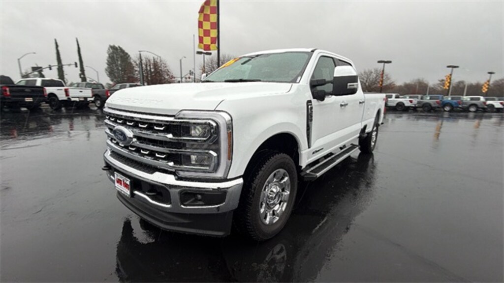 Vehicle is equipped with 5th Wheel/Gooseneck Hitch Prep Package, Chrome Package (6" Angular Bright Anodized Step Bars, Chrome Door Handles, Chrome Exhaust Tip, Unique Chrome Mirror Caps, and Wheels: 20" Chrome PVD Aluminum), F-250 >10K GVWR Package, Ford Connectivity Package (1-Year Included), Internet access capable: 5G Modem - Ford Connectivity Package, Order Code 608A, 4WD, 4-Wheel Disc Brakes, 8 Speakers, ABS brakes, Adjustable pedals, Air Conditioning, All-Weather Floor Mats, Alloy wheels, AM/FM radio: SiriusXM with 360L, Auto High-beam Headlights, Auto-dimming Rear-View mirror, Automatic temperature control, BLIS w/Cross-Traffic Alert, Brake assist, Bumpers: chrome, Compass, Delay-off headlights, Driver door bin, Driver vanity mirror, Dual AGM 68 AH Battery, Dual front impact airbags, Dual front side impact airbags, Electronic Stability Control, Emergency communication system: SYNC 4 911 Assist, Flow-Through Console, Front ActiveX Trimmed 40/Console/40 Seats, Front anti-roll bar, Front Bucket Seats, Front Center Armrest, Front dual zone A/C, Front fog lights, Front License Plate Bracket, Front reading lights, Fully automatic headlights, Garage door transmitter, Heated door mirrors, Heated front seats, Heated rear seats, Heated steering wheel, Illuminated entry, Low tire pressure warning, Memory seat, Navigation system: Connected Navigation, Outside temperature display, Overhead airbag, Overhead console, Panic alarm, Passenger door bin, Passenger vanity mirror, Pedal memory, Power door mirrors, Power driver seat, Power passenger seat, Power steering, Power windows, Privacy Glass, Radio: B&O Sound System by Bang & Olufsen, Rain sensing wipers, Rear Parking Sensors, Rear reading lights, Rear seat center armrest, Rear step bumper, Rear window defroster, Remote keyless entry, Security system, SiriusXM w/360L, Speed control, Split folding rear seat, Steering wheel mounted audio controls, SYNC 4 w/Enhanced Voice Recognition, Tachometer, Telescoping steering wheel, Tilt steering wheel, Tough Bed Spray-In Bedliner, Traction control, Trip computer, Turn signal indicator mirrors, Variably intermittent wipers, Ventilated front seats, and Wheels: 18" Bright Machined & Carbonized Gray Alum.