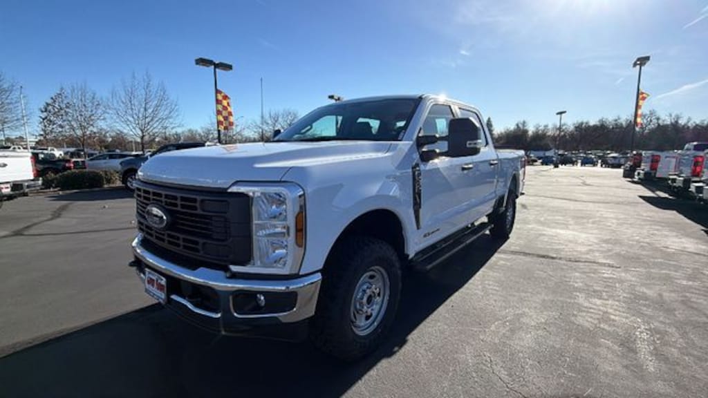 Vehicle is equipped with Ford Connectivity Package (1-Year Included), GVWR: 10,000 Lb Payload Package, GVWR: F-250 >10K Package, Internet access capable: 5G Modem - Ford Connectivity Package, Order Code 600A (17" Argent Painted Steel Wheels, 3.73 Axle Ratio, HD Vinyl 40/20/40 Split Bench Seat, Radio: AM/FM Stereo with MP3 Player, and SYNC 4), XL Chrome Package (Bright Chrome Hub Covers and Center Ornaments, Chrome Front Bumper, Chrome Rear Step Bumper, and Halogen Fog Lamps), XL Off-Road Package, 4WD, 4-Wheel Disc Brakes, 6 Speakers, ABS brakes, Air Conditioning, AM/FM radio, Brake assist, Compass, Delay-off headlights, Dual AGM 68 AH Battery, Dual front impact airbags, Dual front side impact airbags, Electronic Stability Control, Emergency communication system: SYNC 4 911 Assist, Exterior Parking Camera Rear, Front anti-roll bar, Front Center Armrest w/Storage, Front License Plate Bracket, Front reading lights, Fully automatic headlights, Heated door mirrors, Illuminated entry, Low tire pressure warning, Outside temperature display, Overhead airbag, Overhead console, Panic alarm, Passenger vanity mirror, Platform Running Boards, Power door mirrors, Power steering, Power windows, Rear reading lights, Rear step bumper, Remote keyless entry, Security system, Speed control, Split folding rear seat, Steering wheel mounted audio controls, Tachometer, Telescoping steering wheel, Tilt steering wheel, Traction control, Trailer Brake Controller, Trip computer, Turn signal indicator mirrors, and Variably intermittent wipers. Price includes: $1000 - Retail Customer Cash. Exp. 03/31/2026
