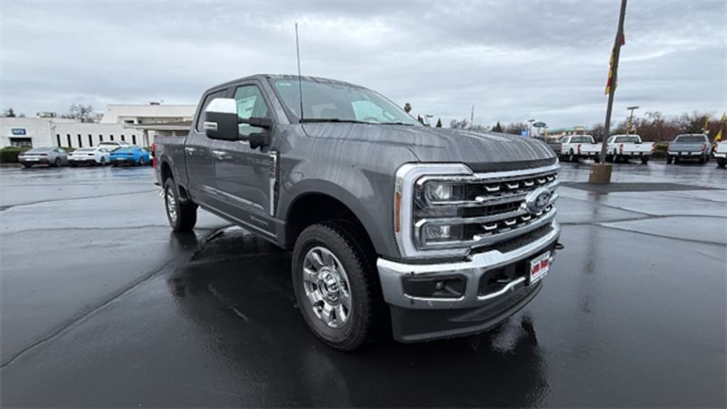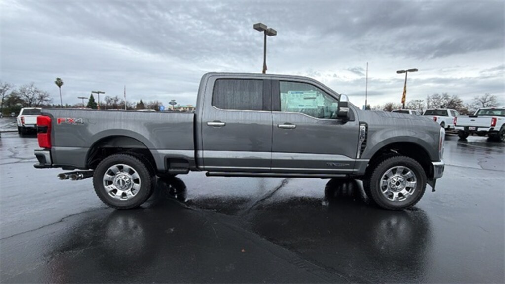 Vehicle is equipped with Chrome Package (6" Angular Bright Anodized Step Bars, Chrome Door Handles, Chrome Exhaust Tip, Unique Chrome Mirror Caps, and Wheels: 20" Chrome PVD Aluminum), F-250 >10K GVWR Package, Ford Connectivity Package (1-Year Included), FX4 Off-Road Package (Hill Descent Control, Off-Road Specifically Tuned Shock Absorbers, and Unique FX4 Off-Road Box Decal), Internet access capable: 5G Modem - Ford Connectivity Package, Lariat Premium Package (Lane Departure Warning System, Power-Sliding Rear-Window w/Defrost, Privacy Glass, Pro Trailer Backup Assist, and Pro Trailer Hitch Assist), Lariat Ultimate Package (4-Way Adjustable Headrests, Head-Up Display, Power-Deployable Running Boards, Radio: B&O Unleashed Sound System by Bang & Olufsen, SiriusXM w/360L, SYNC 4 w/Enhanced Voice Recognition, and Tailgate Step & Handle), Order Code 608A, 4WD, 4-Wheel Disc Brakes, 8 Speakers, ABS brakes, Adaptive Cruise Control w/Stop-and-Go, Adjustable pedals, Air Conditioning, All-Weather Floor Mats, Alloy wheels, AM/FM radio: SiriusXM with 360L, Auto High-beam Headlights, Auto-dimming Rear-View mirror, Automatic High Beam, Automatic temperature control, BLIS w/Cross-Traffic Alert, Brake assist, Bumpers: chrome, Compass, Delay-off headlights, Driver door bin, Driver vanity mirror, Dual AGM 68 AH Battery, Dual front impact airbags, Dual front side impact airbags, Electronic Stability Control, Emergency communication system: SYNC 4 911 Assist, Engine Block Heater, Flow-Through Console, Front & Rear Parking Sensors, Front ActiveX Trimmed 40/Console/40 Seats, Front anti-roll bar, Front Bucket Seats, Front Center Armrest, Front dual zone A/C, Front fog lights, Front License Plate Bracket, Front reading lights, Fully automatic headlights, Garage door transmitter, Heated door mirrors, Heated front seats, Heated rear seats, Heated steering wheel, Illuminated entry, Lane-Keeping System, Low tire pressure warning, Memory seat, Navigation system: Connected Navigation, Onboard Scales & Smart Hitch, Outside temperature display, Overhead airbag, Overhead console, Panic alarm, Passenger door bin, Passenger vanity mirror, Pedal memory, Post-Collision Braking, Power door mirrors, Power driver seat, Power passenger seat, Power steering, Power windows, Pre-Collision Assist, Radio: B&O Sound System by Bang & Olufsen, Rain sensing wipers, Rear Parking Sensors, Rear reading lights, Rear seat center armrest, Rear step bumper, Rear window defroster, Remote keyless entry, SecuriCode Keyless Entry Keypad (Driver's Side), Security system, Speed control, Split folding rear seat, Steering wheel mounted audio controls, Tachometer, Telescoping steering wheel, Tilt steering wheel, Tough Bed Spray-In Bedliner, Traction control, Trip computer, Turn signal indicator mirrors, Twin Panel Power Moonroof, Upfitter Switches (6), Variably intermittent wipers, Ventilated front seats, and Wheels: 18" Bright Machined & Carbonized Gray Alum.