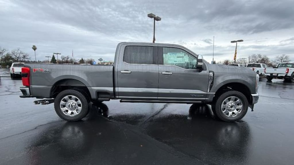 Vehicle is equipped with Chrome Package, Ford Connectivity Package (1-Year Included), FX4 Off-Road Package (Hill Descent Control, Off-Road Specifically Tuned Shock Absorbers, and Unique FX4 Off-Road Box Decal), GVWR: F-250 >10K Package, Internet access capable: 5G Modem - Ford Connectivity Package, Lariat Premium Package (Power-Sliding Rear-Window with Defrost, Privacy Glass, Pro Trailer Backup Assist, and Pro Trailer Hitch Assist), Lariat Ultimate Package (4-Way Adjustable Headrests, Head-Up Display, Power-Deployable Running Boards, Radio: B&O Unleashed Sound System by Bang & Olufsen, SiriusXM with 360L, SYNC 4 with Enhanced Voice Recognition, and Tailgate Step and Handle), Order Code 608A (Flow-Through Console, Front ActiveX Trimmed 40/Console/40 Seats, Radio: B&O Sound System by Bang and Olufsen, and Wheels: 18" Bright Machined and Carbonized Gray Aluminum), 4WD, 4-Wheel Disc Brakes, 8 Speakers, ABS brakes, Adaptive Cruise Control with Stop-and-Go, Adjustable pedals, Air Conditioning, All-Weather Floor Mats, Alloy wheels, AM/FM radio: SiriusXM with 360L, Auto High-beam Headlights, Auto-dimming Rear-View mirror, Automatic High Beam, Automatic temperature control, BLIS with Cross-Traffic Alert, Brake assist, Bumpers: chrome, Compass, Delay-off headlights, Driver door bin, Driver vanity mirror, Dual AGM 68 AH Battery, Dual front impact airbags, Dual front side impact airbags, Electronic Stability Control, Emergency communication system: SYNC 4 911 Assist, Engine Block Heater, Front and Rear Parking Sensors, Front anti-roll bar, Front Bucket Seats, Front Center Armrest, Front dual zone A/C, Front fog lights, Front License Plate Bracket, Front reading lights, Fully automatic headlights, Garage door transmitter, Heated door mirrors, Heated front seats, Heated rear seats, Heated steering wheel, Illuminated entry, Lane-Keeping System, Low tire pressure warning, Memory seat, Navigation system: Connected Navigation, Onboard Scales and Smart Hitch, Outside temperature display, Overhead airbag, Overhead console, Panic alarm, Passenger door bin, Passenger vanity mirror, Pedal memory, Post-Collision Braking, Power door mirrors, Power driver seat, Power passenger seat, Power steering, Power windows, Pre-Collision Assist, Rain sensing wipers, Rear Parking Sensors, Rear reading lights, Rear seat center armrest, Rear step bumper, Rear window defroster, Remote keyless entry, SecuriCode Keyless Entry Keypad (driver's Side), Security system, Speed control, Split folding rear seat, Steering wheel mounted audio controls, Tachometer, Telescoping steering wheel, Tilt steering wheel, Tough Bed Spray-in Bedliner, Traction control, Trip computer, Turn signal indicator mirrors, Twin Panel Power Moonroof, Upfitter Switches (6), Variably intermittent wipers, and Ventilated front seats.